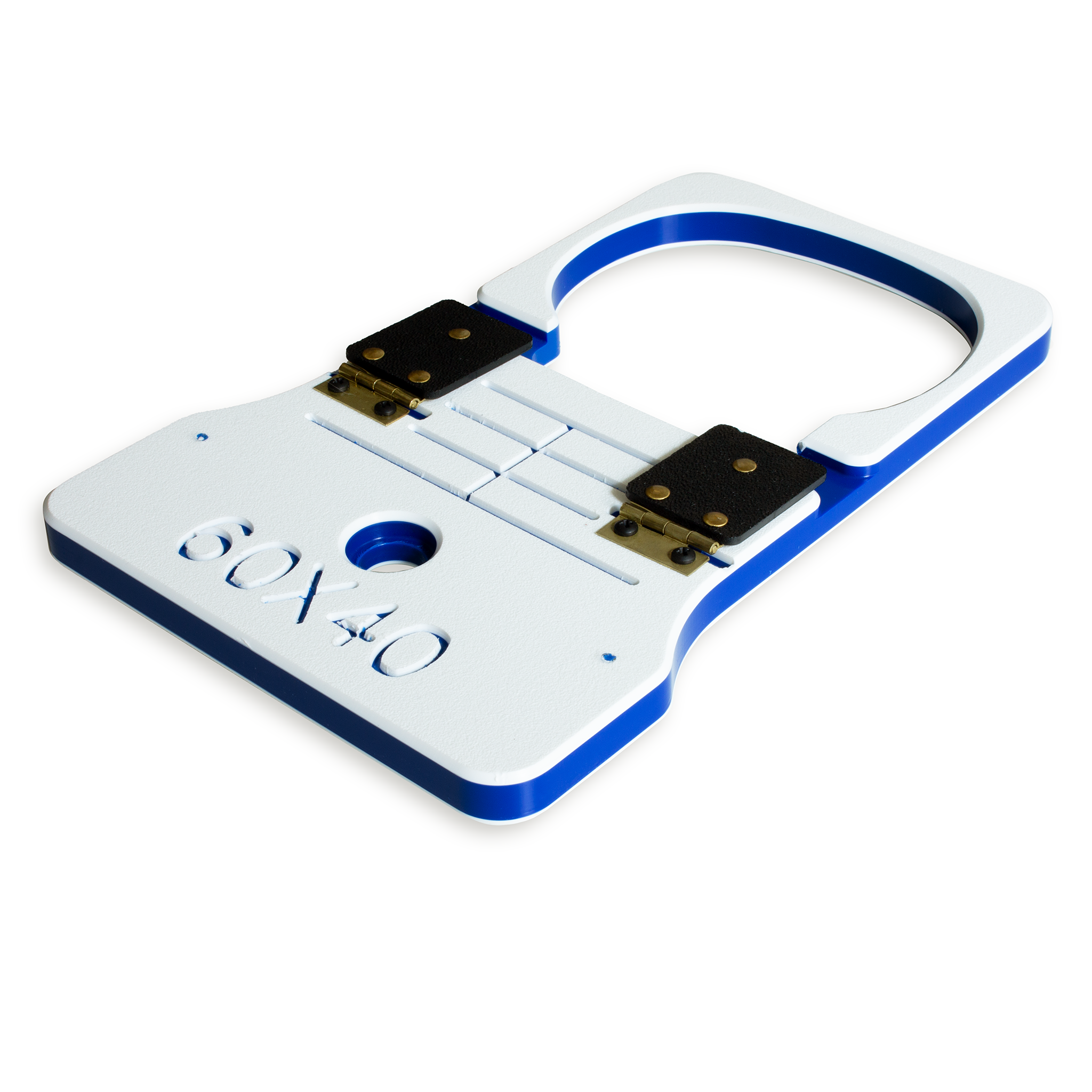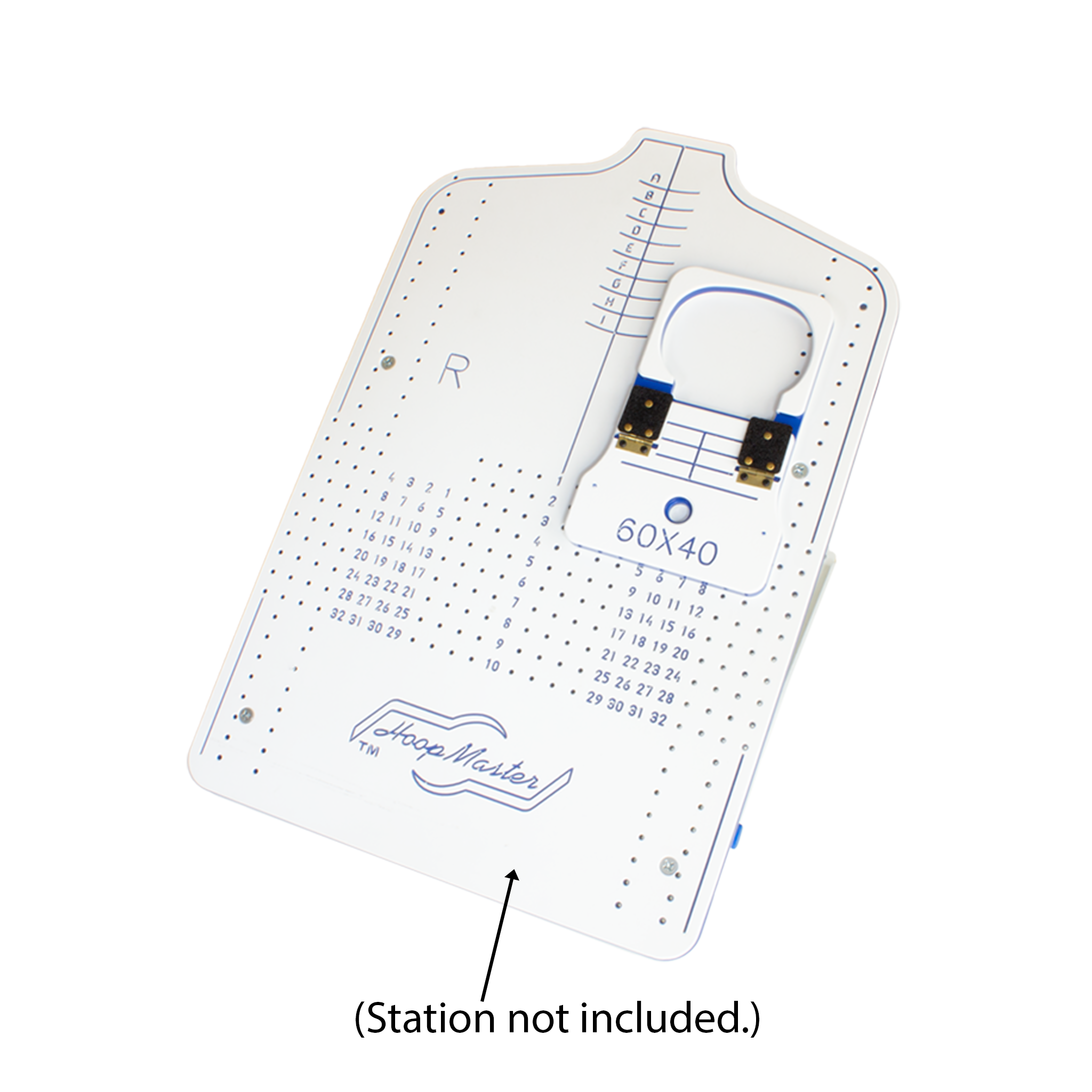 The 60 x 40 mm Brother Hoop Fixture is specifically designed for use with the Brother 60 x 40 mm hoop on HoopMaster stations.