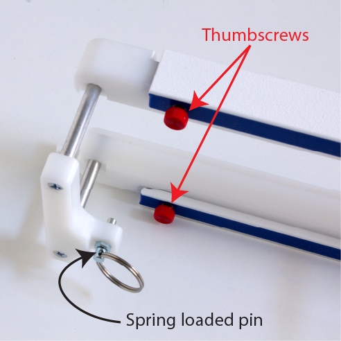 The tubular support has two thumbscrews located on the underside which can be loosened to adjust the length of the support as needed.