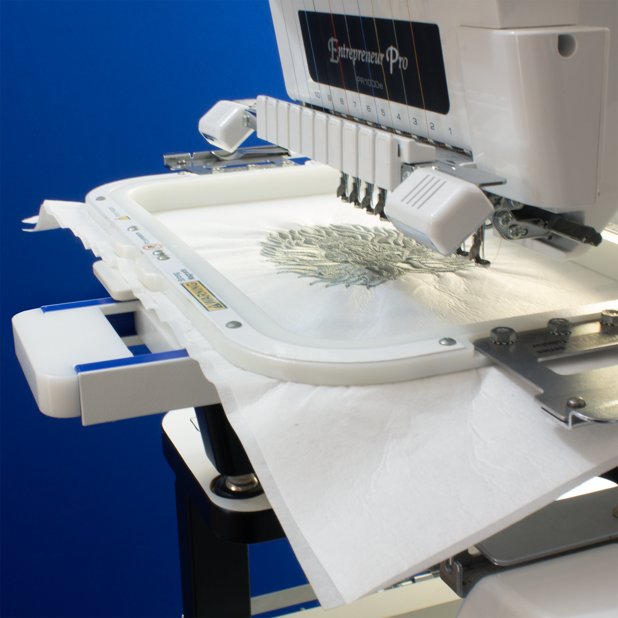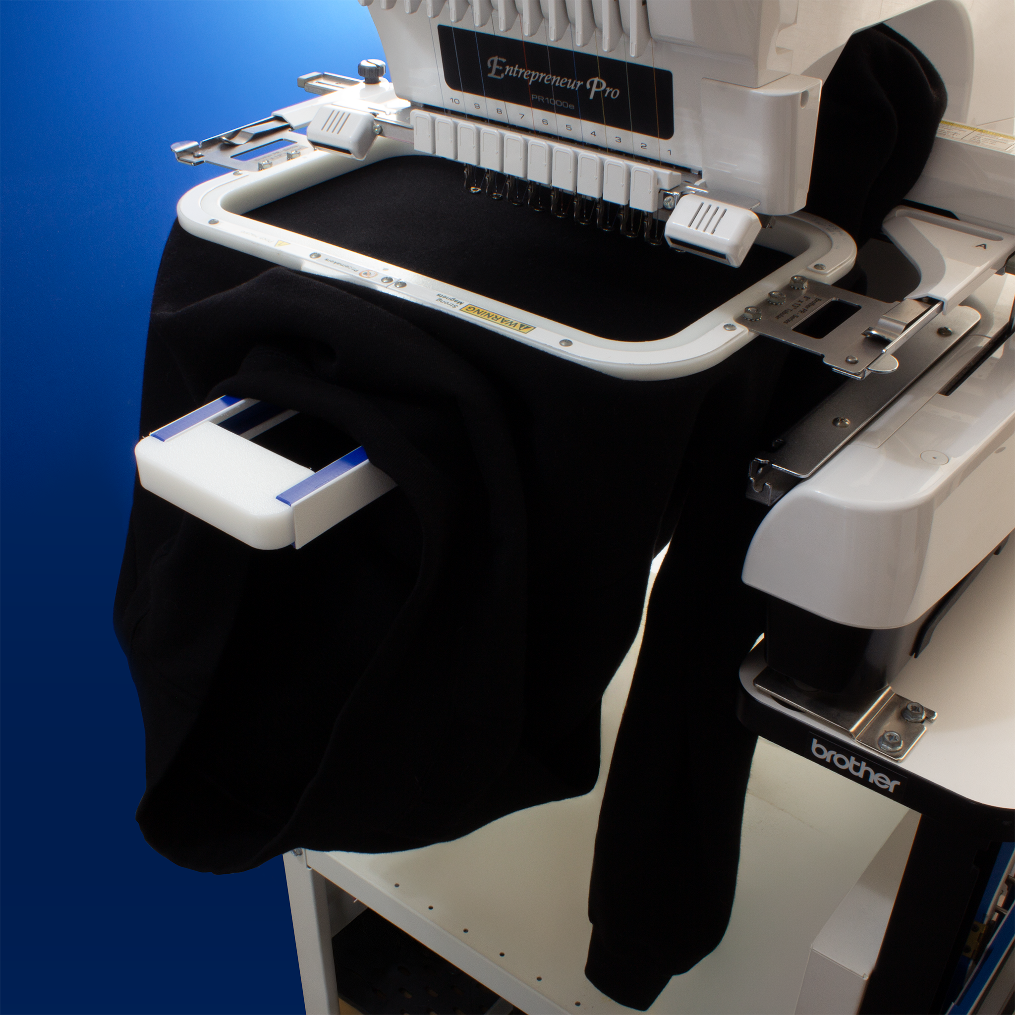 The Tubular Hoop Support is a HoopMaster accessory designed exclusively for Brother VR (1 needle) and PR (6 needle and 10 needle) embroidery machines. It supports the weight of heavy or bulky items while embroidering, reducing undue pressure on the machine’s hoop arms.
