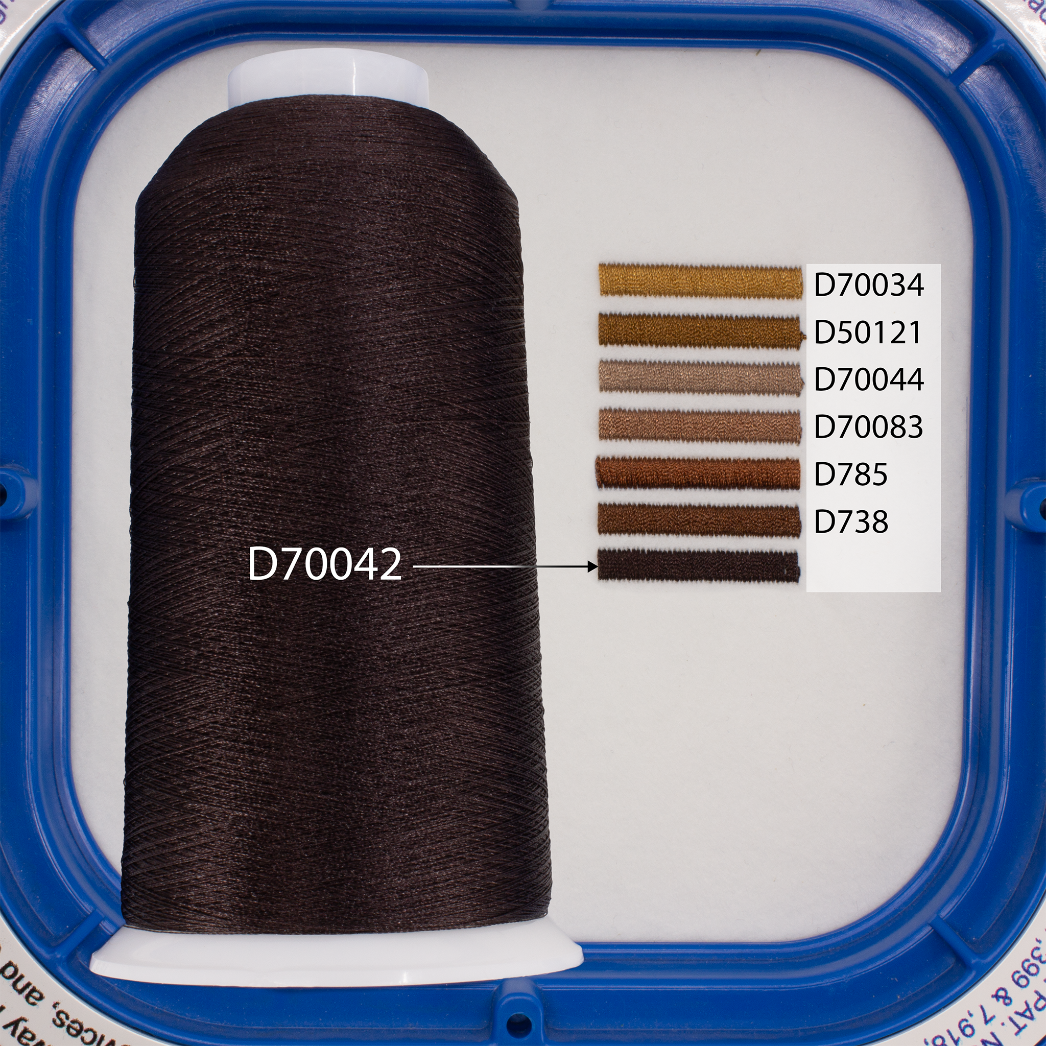 100% Polyester embroidery thread 120D/2, 5000 meter spool.