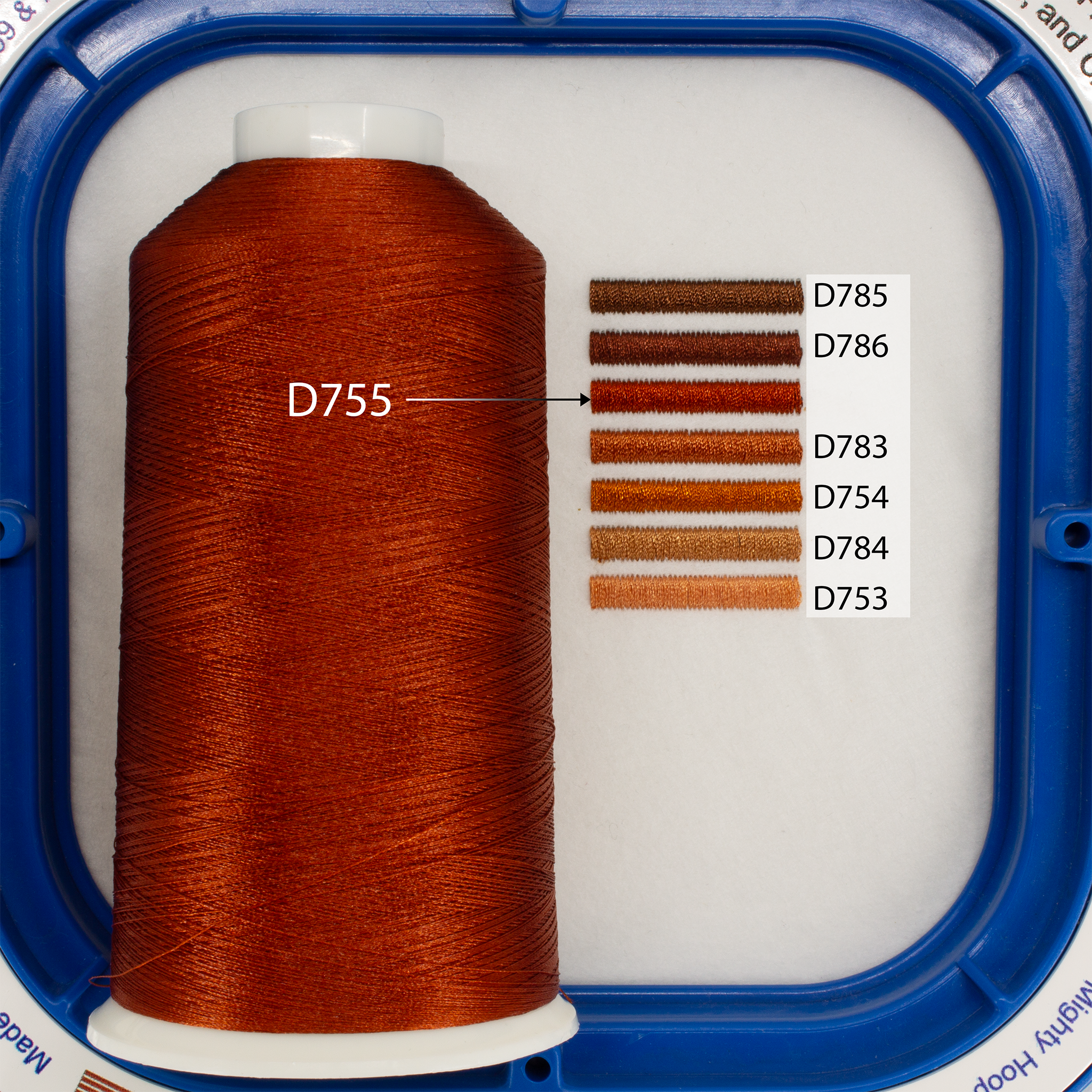 100% Polyester embroidery thread 120D/2, 5000 meter spool.