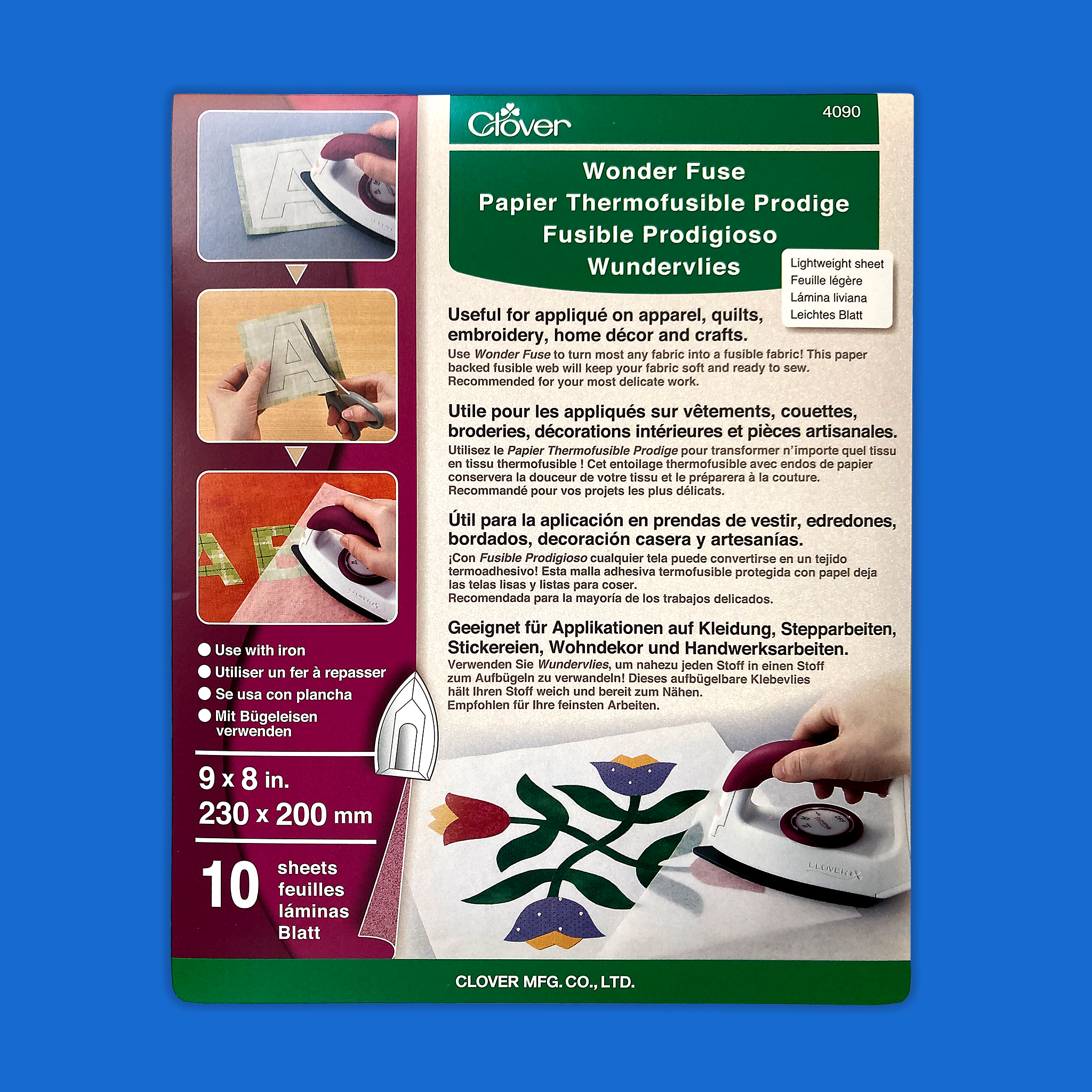 Clover Wonder Fuse is a lightweight fusible web with paper back to turn almost any fabric into a fusible fabric.