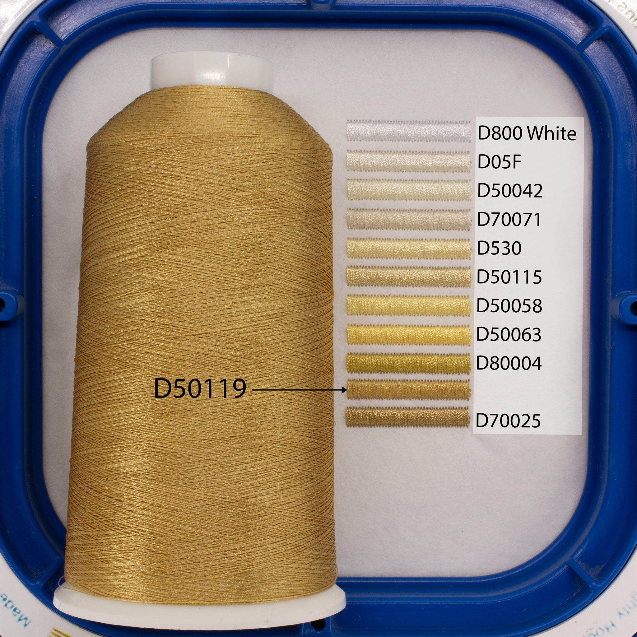 100% Polyester embroidery thread 120D/2, 5000 meter spool.