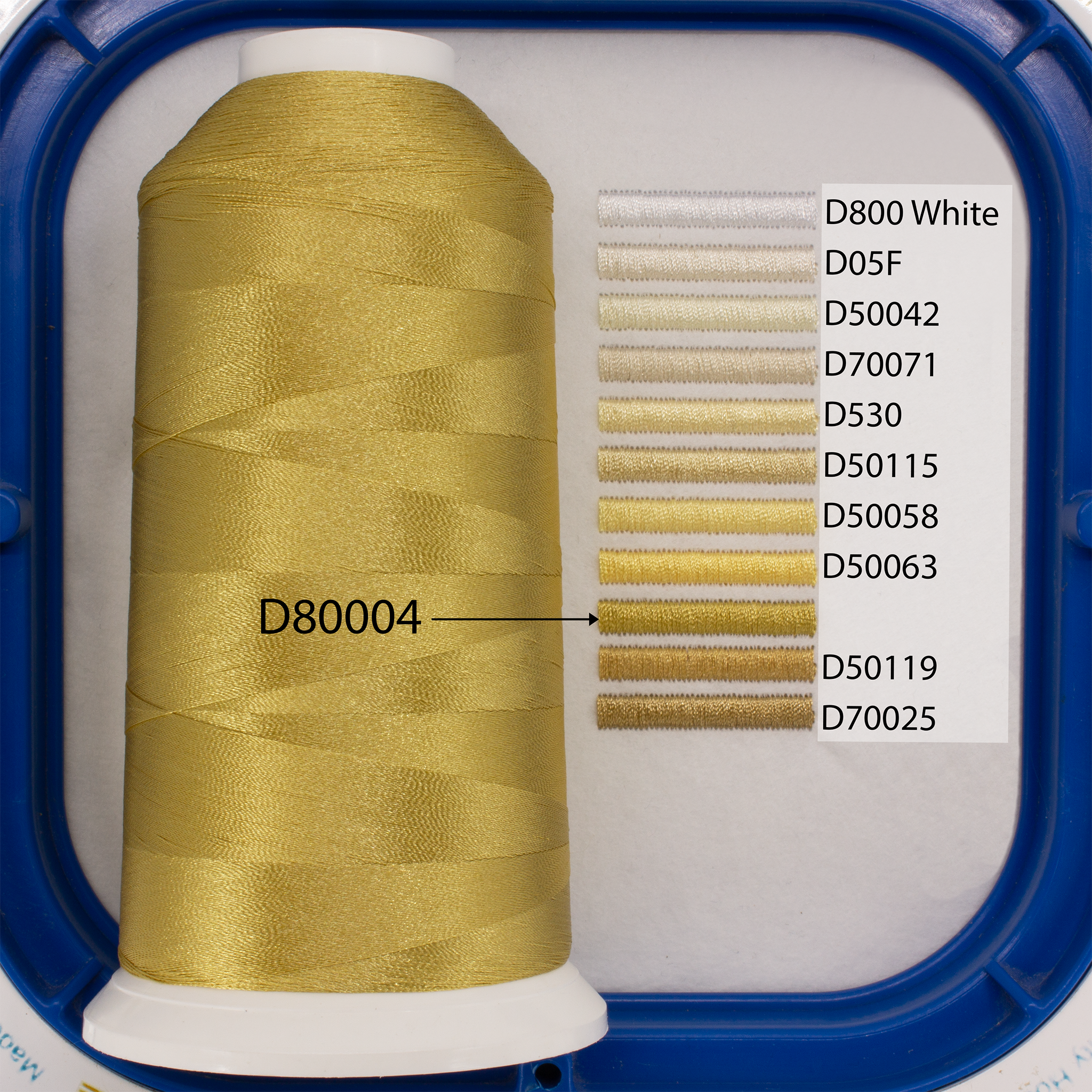 100% Polyester embroidery thread 120D/2, 5000 meter spool.