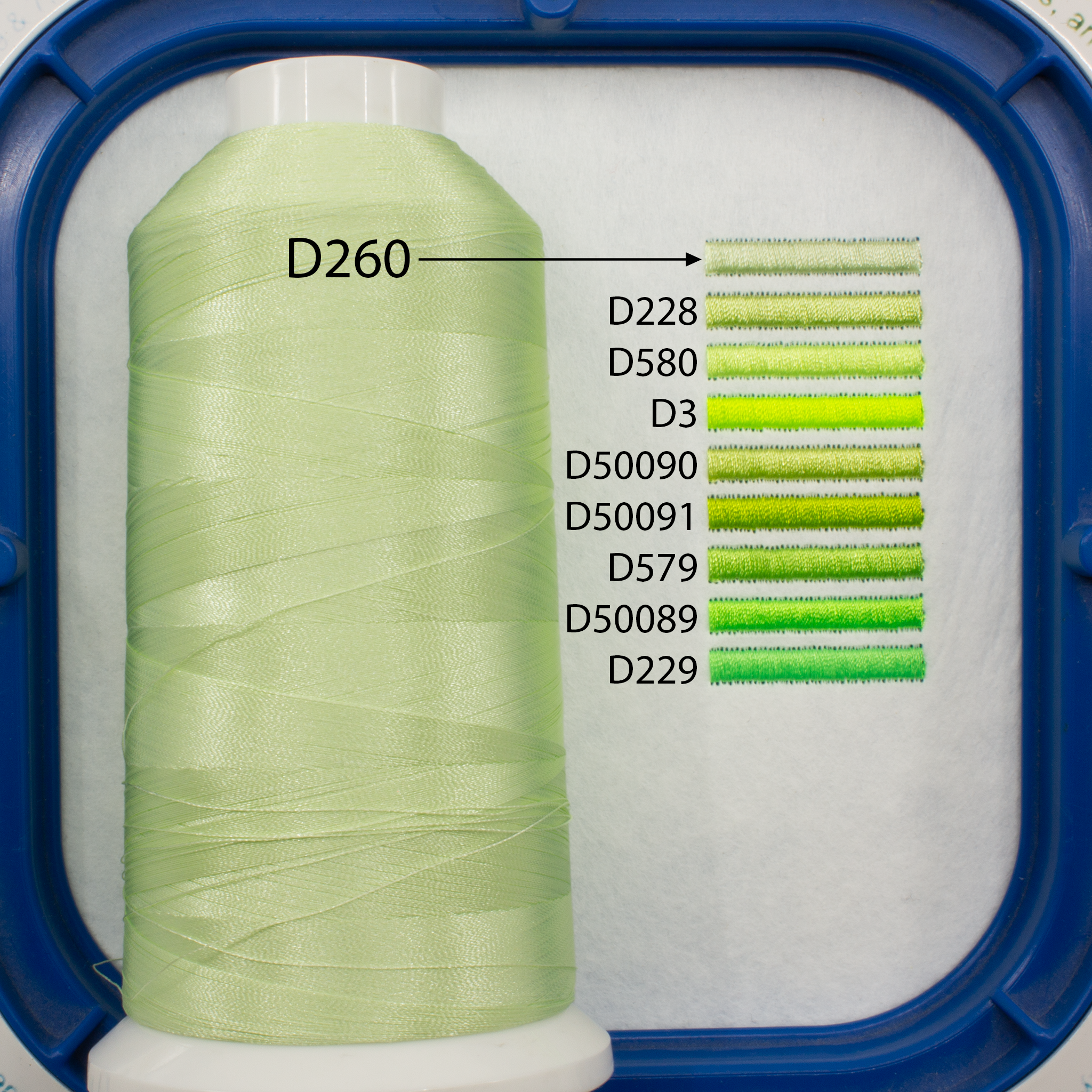100% Polyester embroidery thread 120D/2, 5000 meter spool.