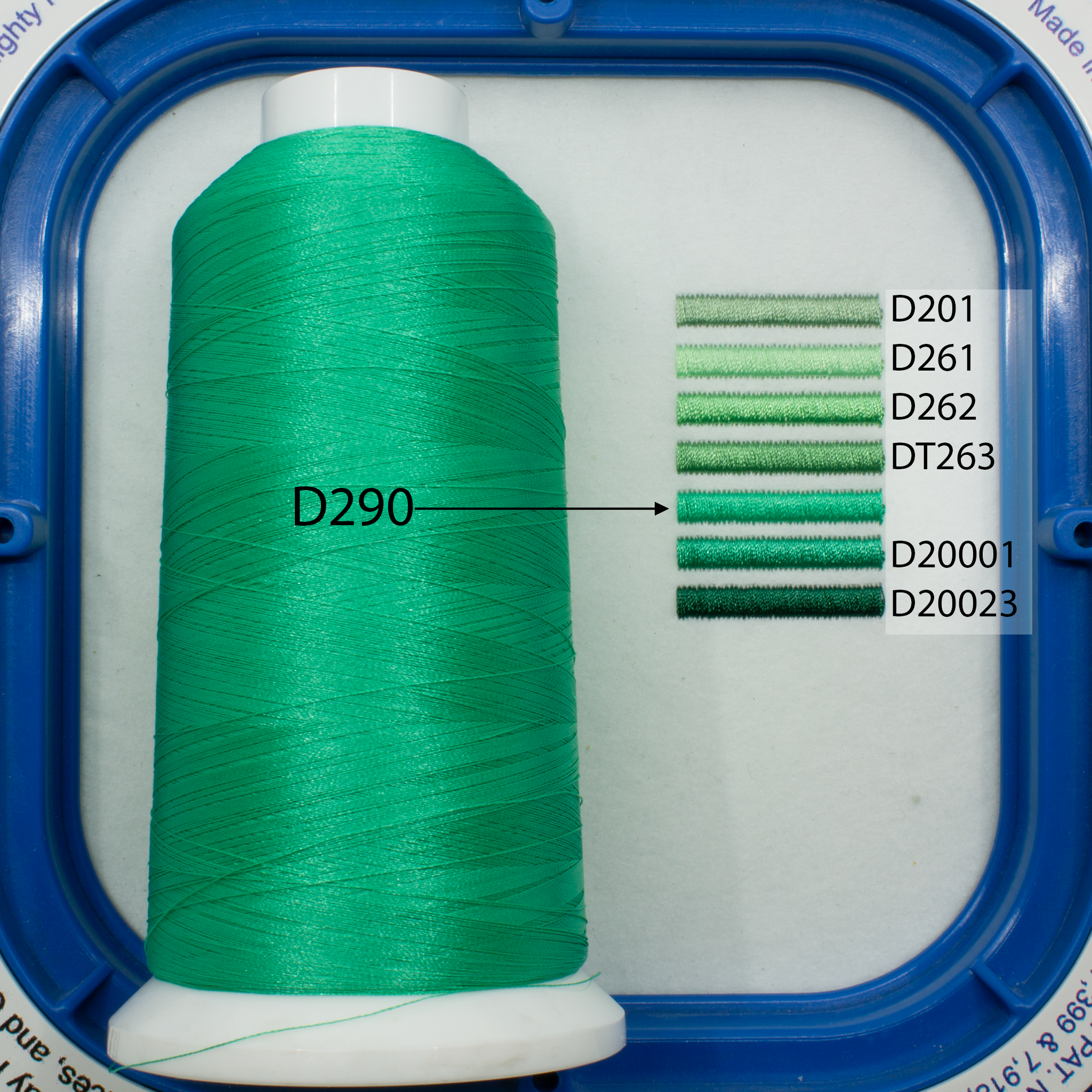 100% Polyester embroidery thread 120D/2, 5000 meter spool.