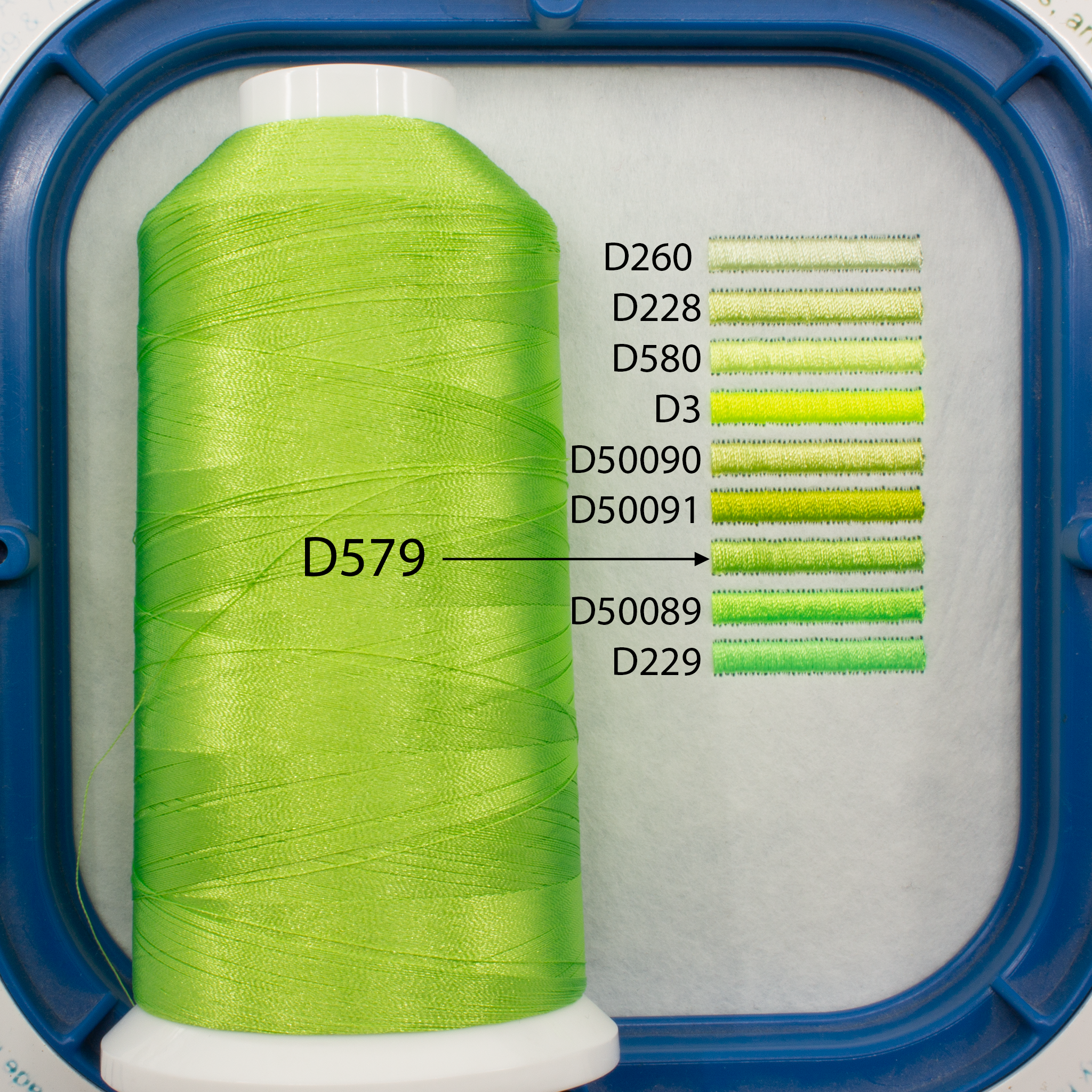 100% Polyester embroidery thread 120D/2, 5000 meter spool.