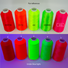 This bright pink thread has fluorescent characteristics and is visible under blue light.