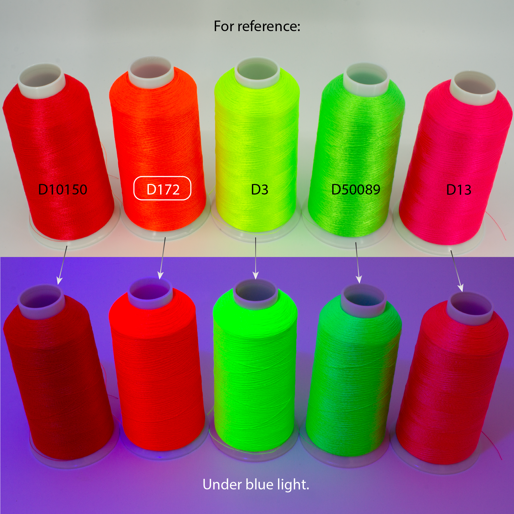 This bright orange thread is fluorescent and will glow brightly under blue light.