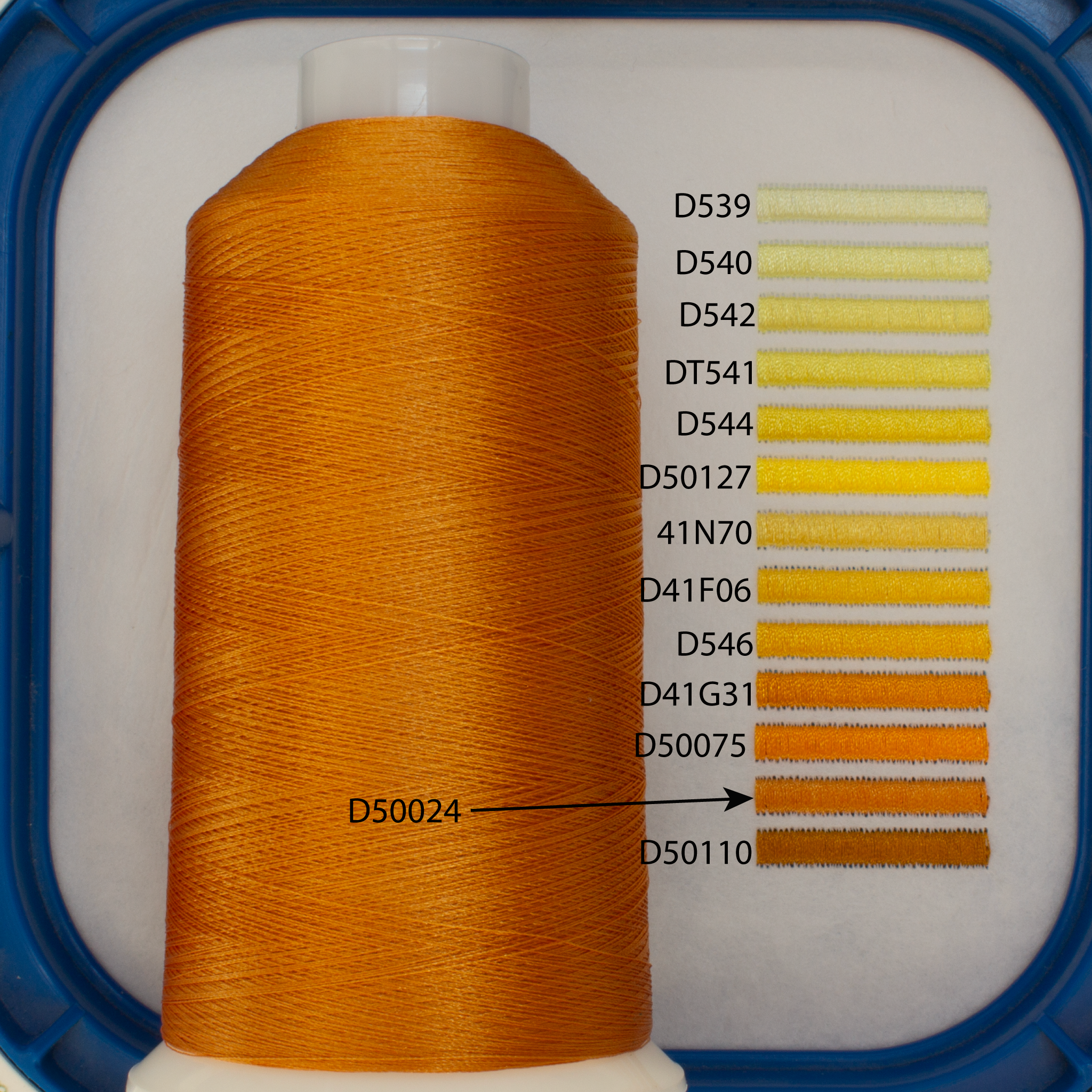 100% Polyester embroidery thread 120D/2, 5000 meter spool.