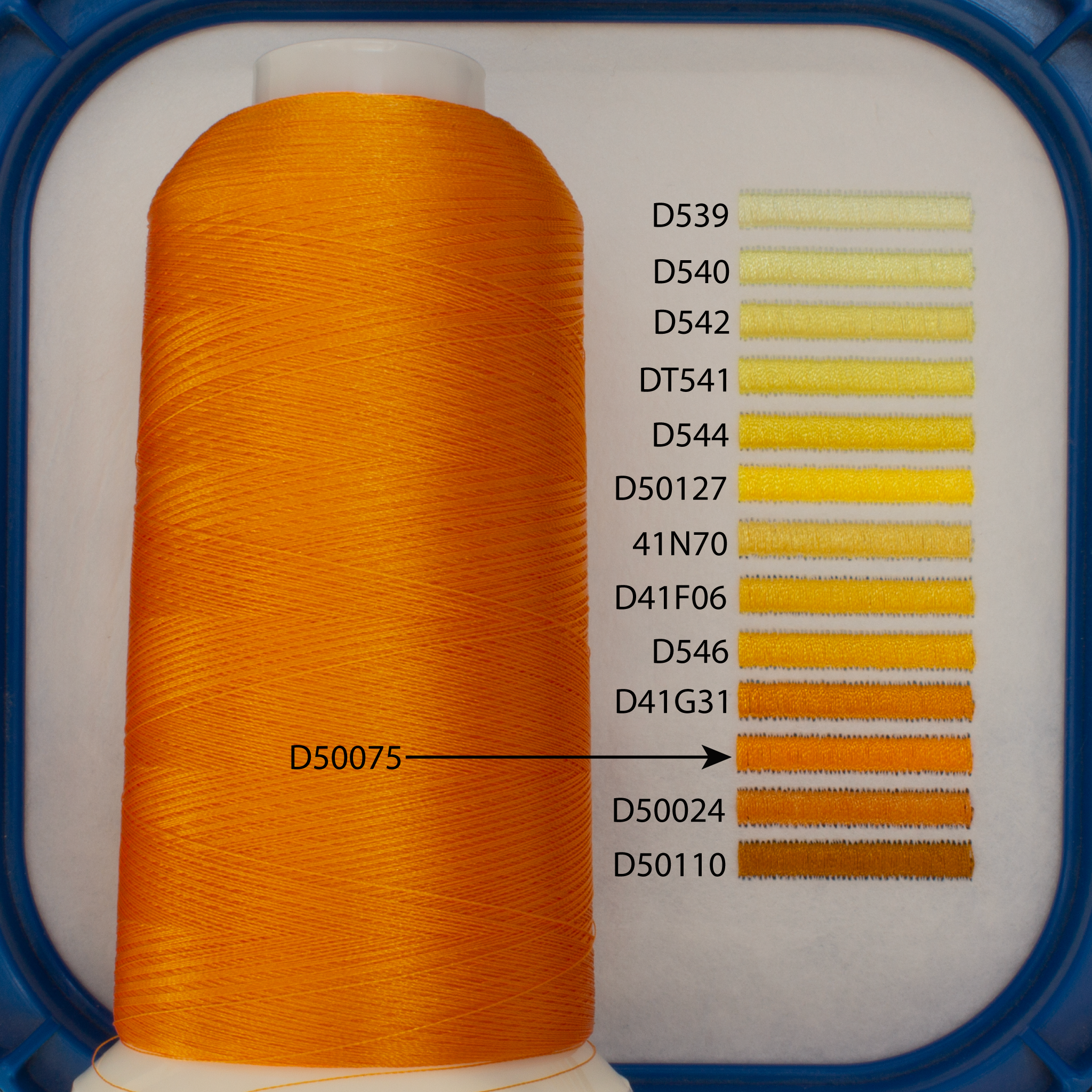100% Polyester embroidery thread 120D/2, 5000 meter spool.