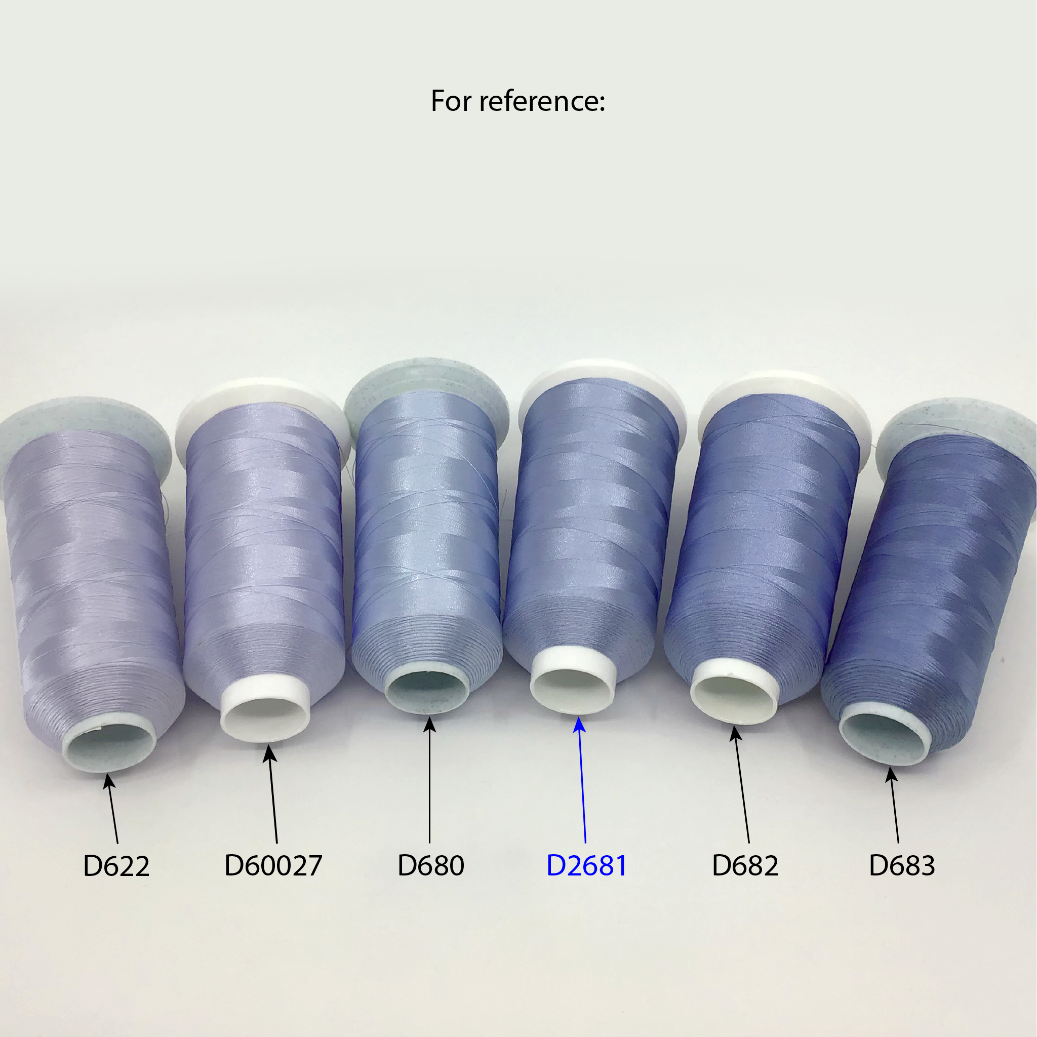 100% Polyester embroidery thread 120D/2, 5000 meter spool.