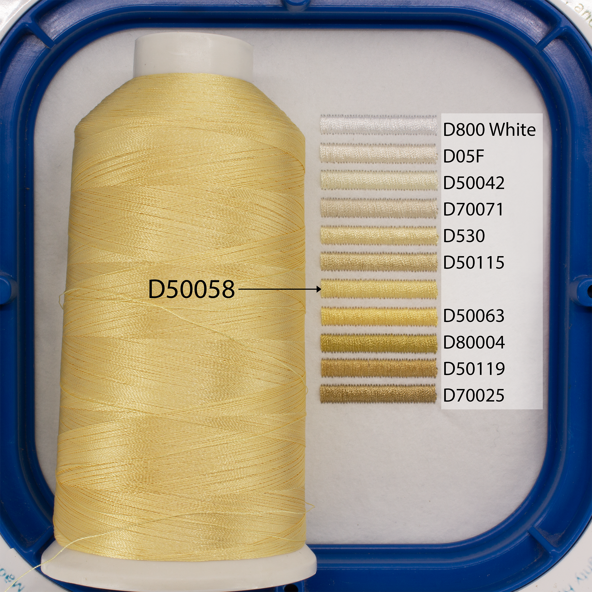100% Polyester embroidery thread 120D/2, 5000 meter spool.