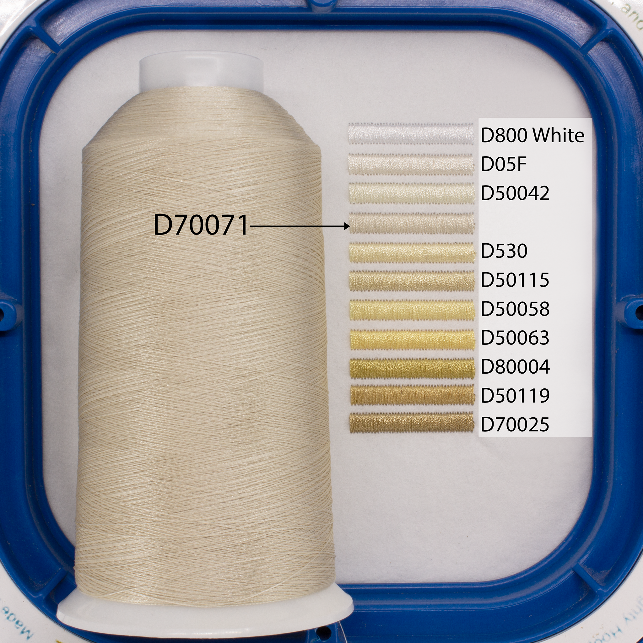 100% Polyester embroidery thread 120D/2, 5000 meter spool.