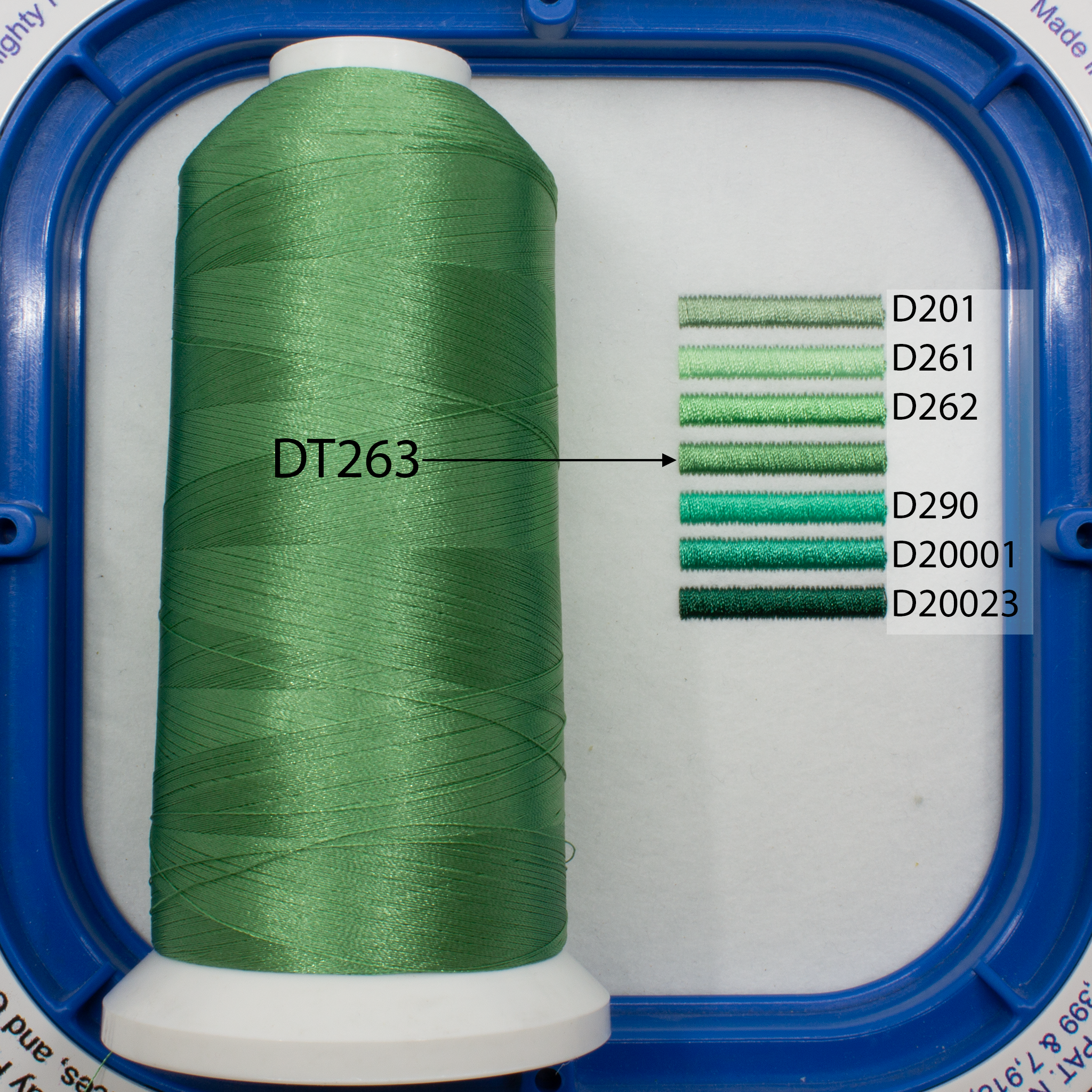 100% Polyester embroidery thread 120D/2, 5000 meter spool.