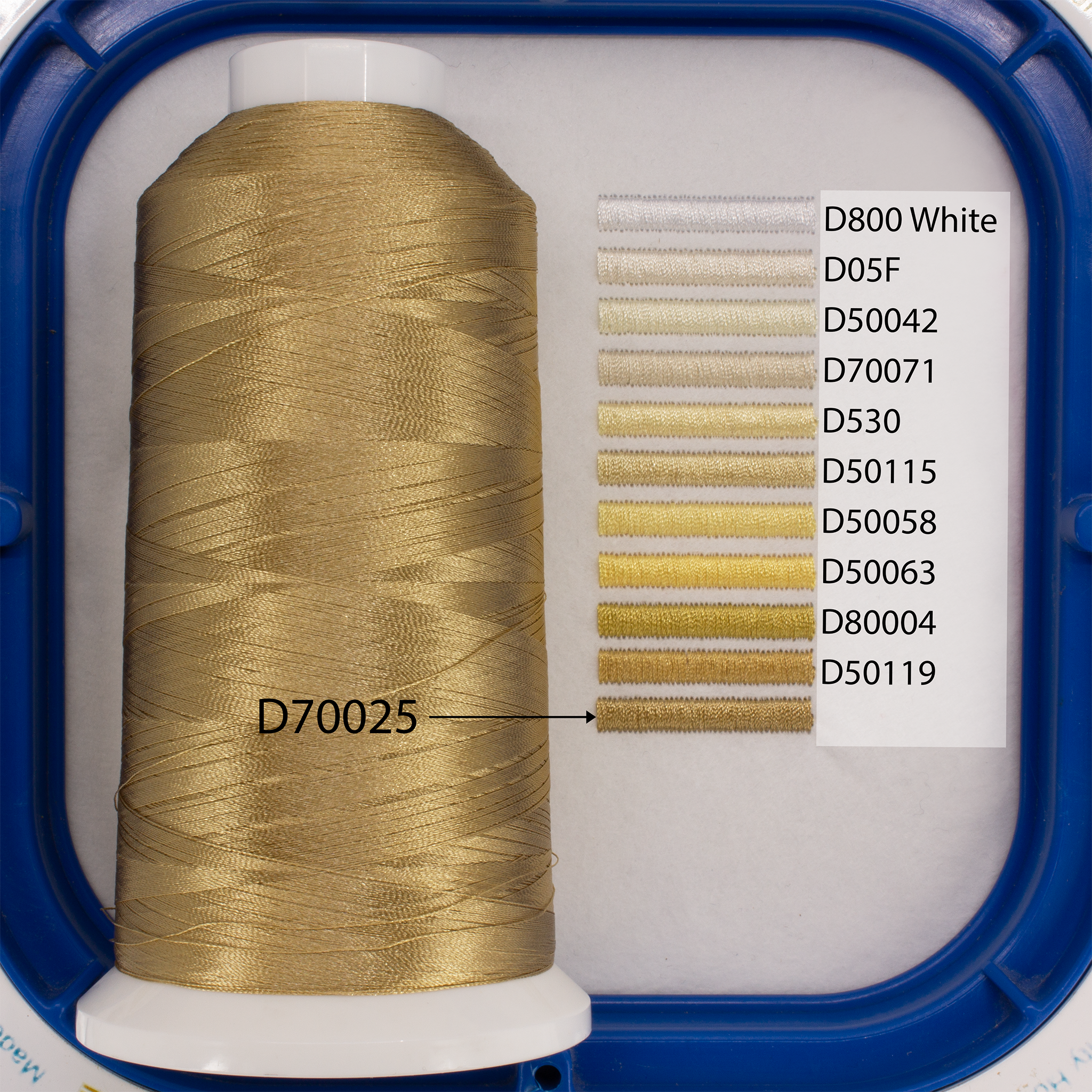 100% Polyester embroidery thread 120D/2, 5000 meter spool.