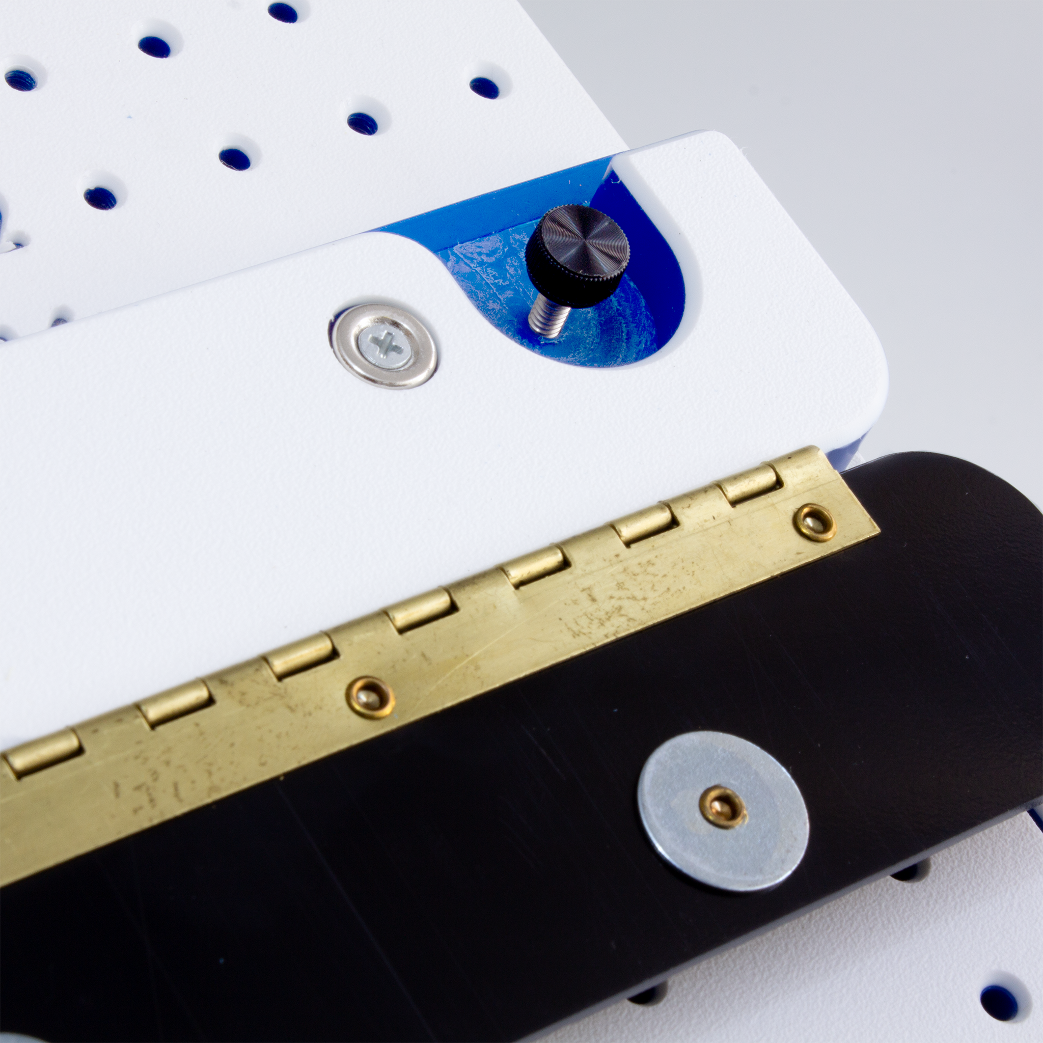 The other part of the fixture simply slides over the top of the station. Once you have reached the desired position, tighten the thumbscrews to the underside of the station.