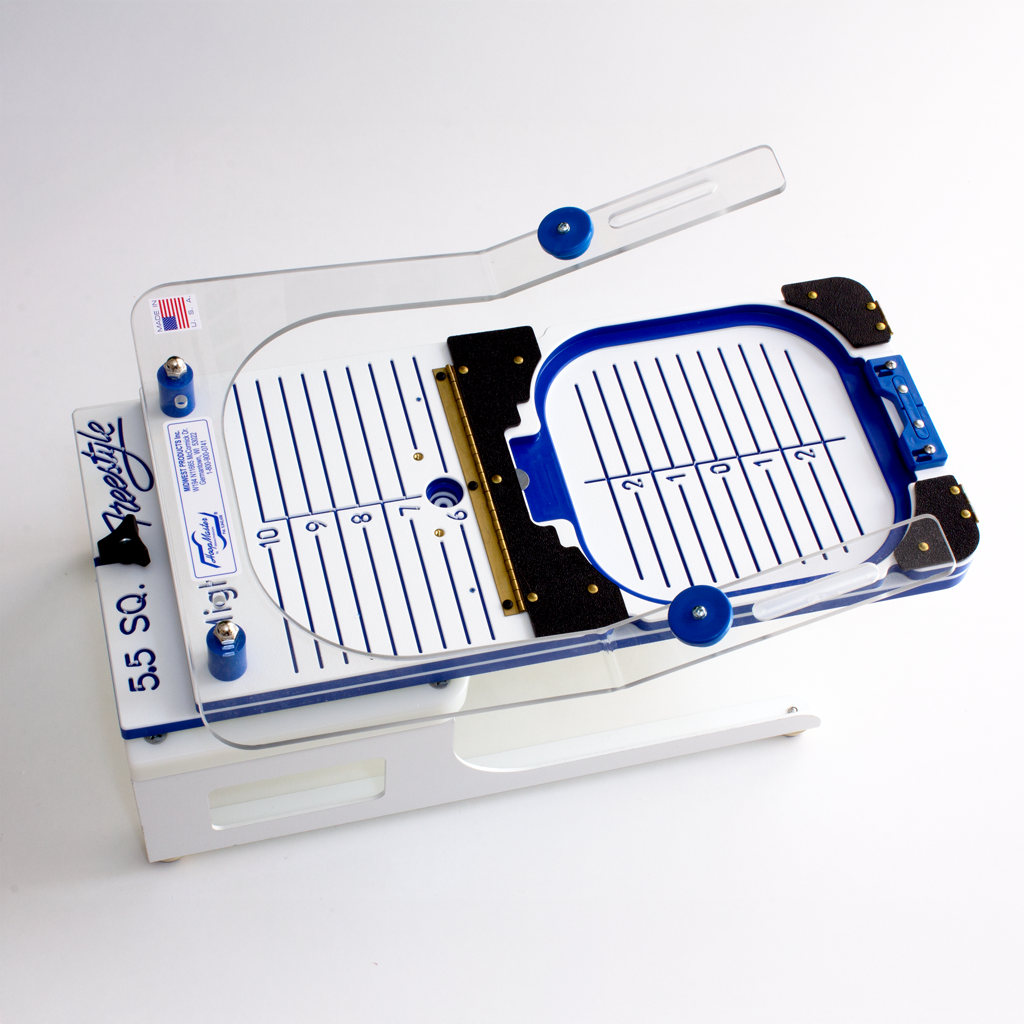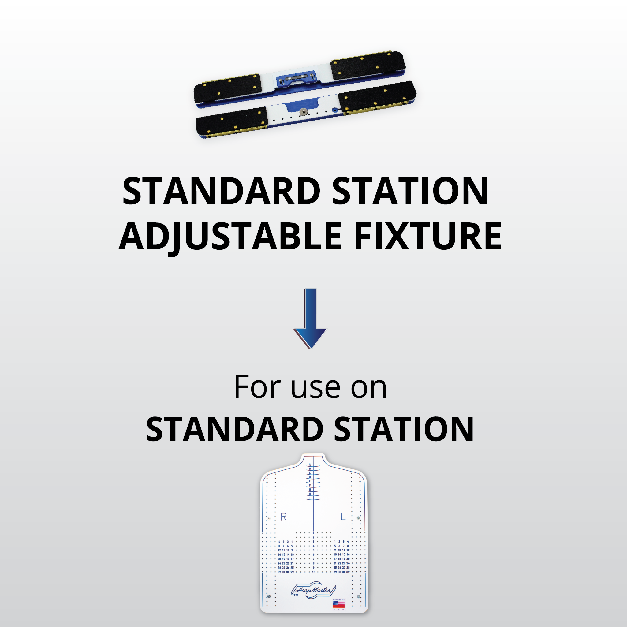 The Adjustable Fixtures specifically enhances the stations' versatility for larger hoops, up to 13" in height.