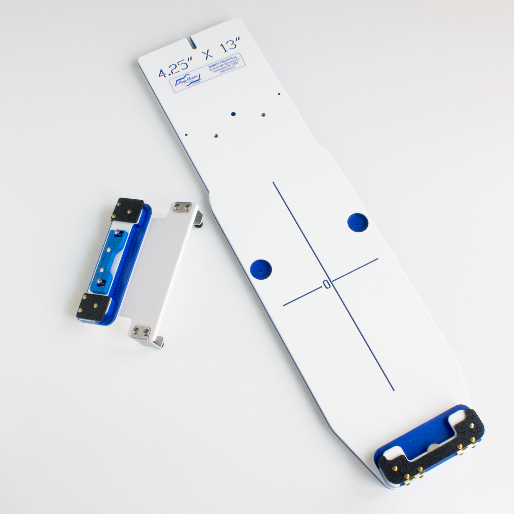 This fixture allows you to mount Mighty Hoops from the 4.25 x 4.25" to the 13 x 16" hoop size on the Portable Mounting Base.