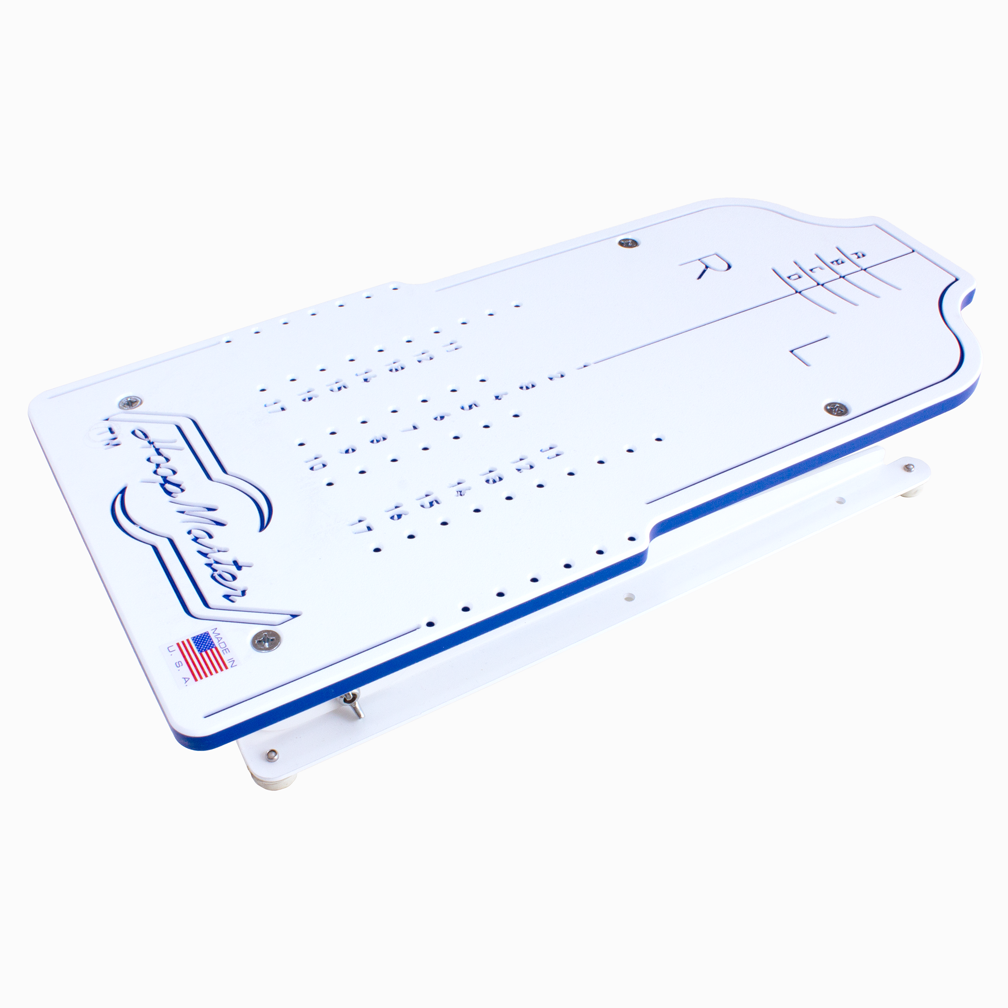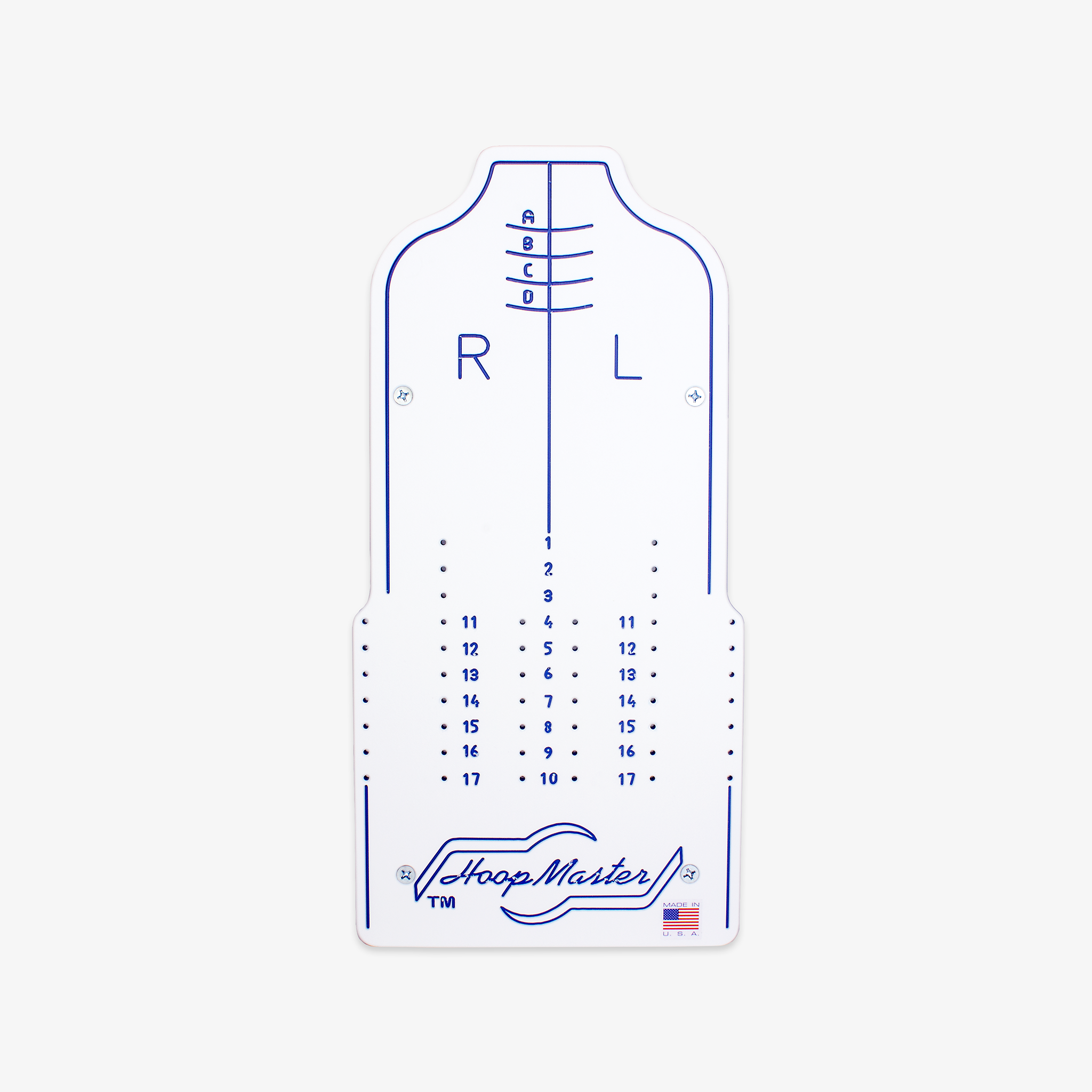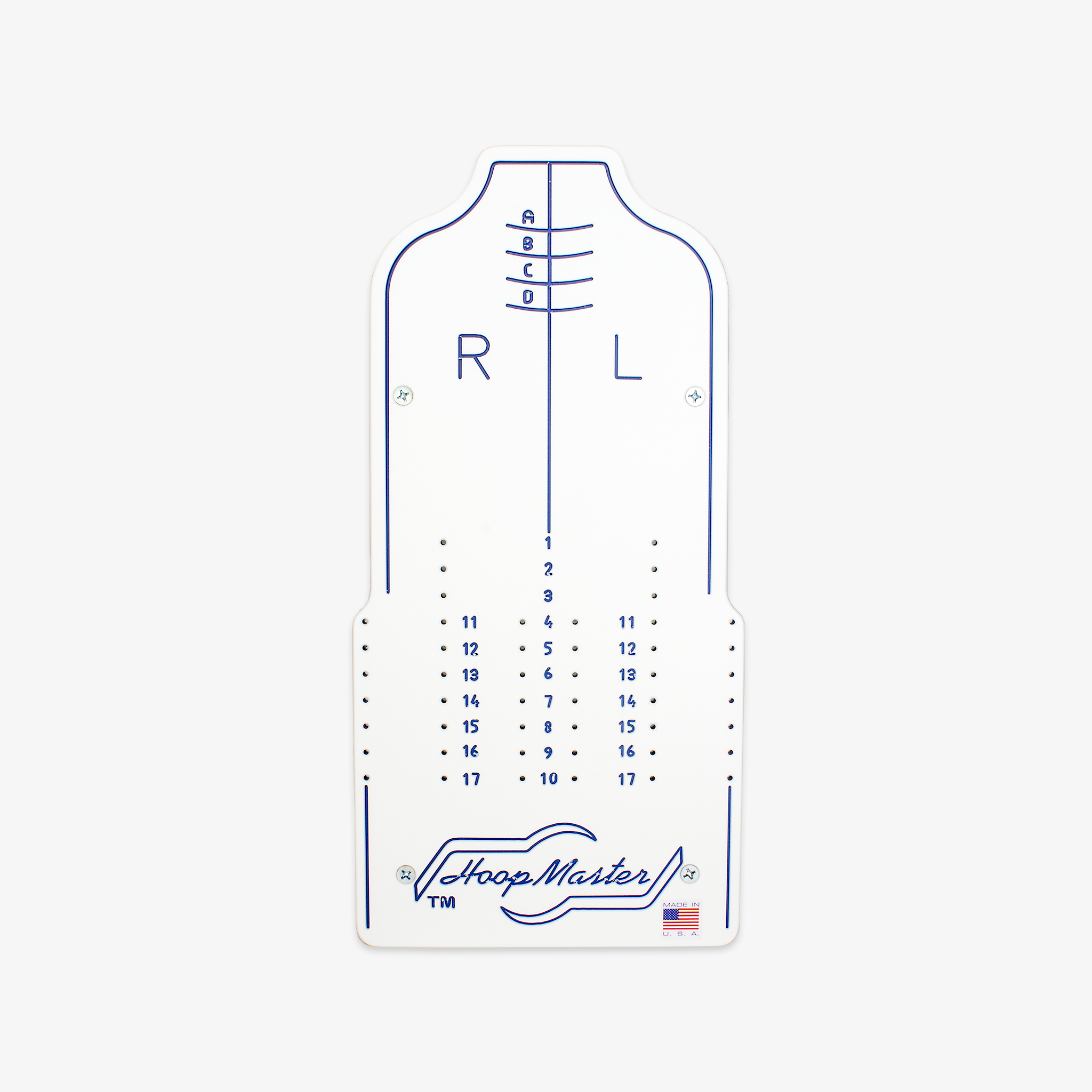 The two pins on the back of this fixture are designed for easy mounting on the HoopMaster Station. Select any set of holes to give you left, right or central positioning.