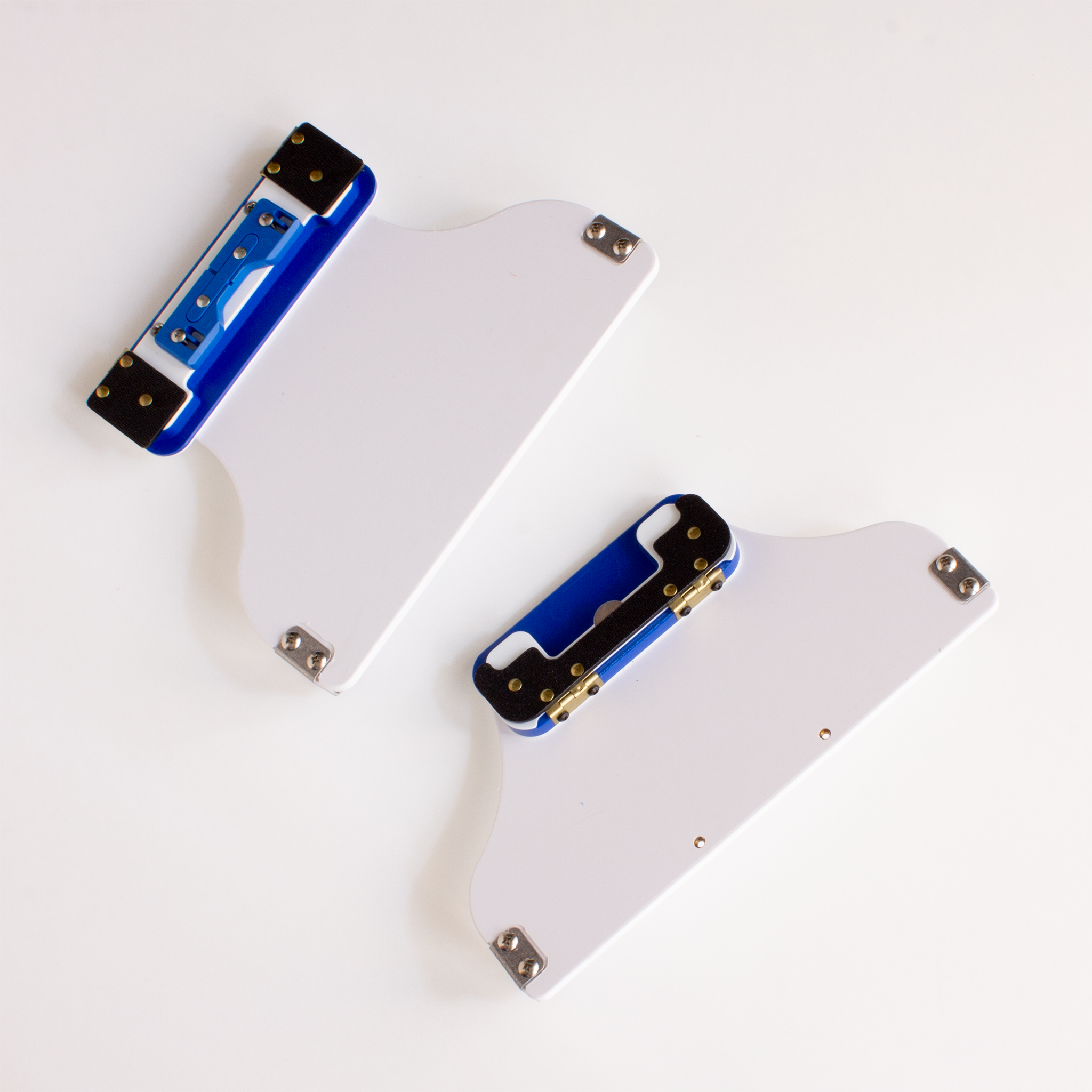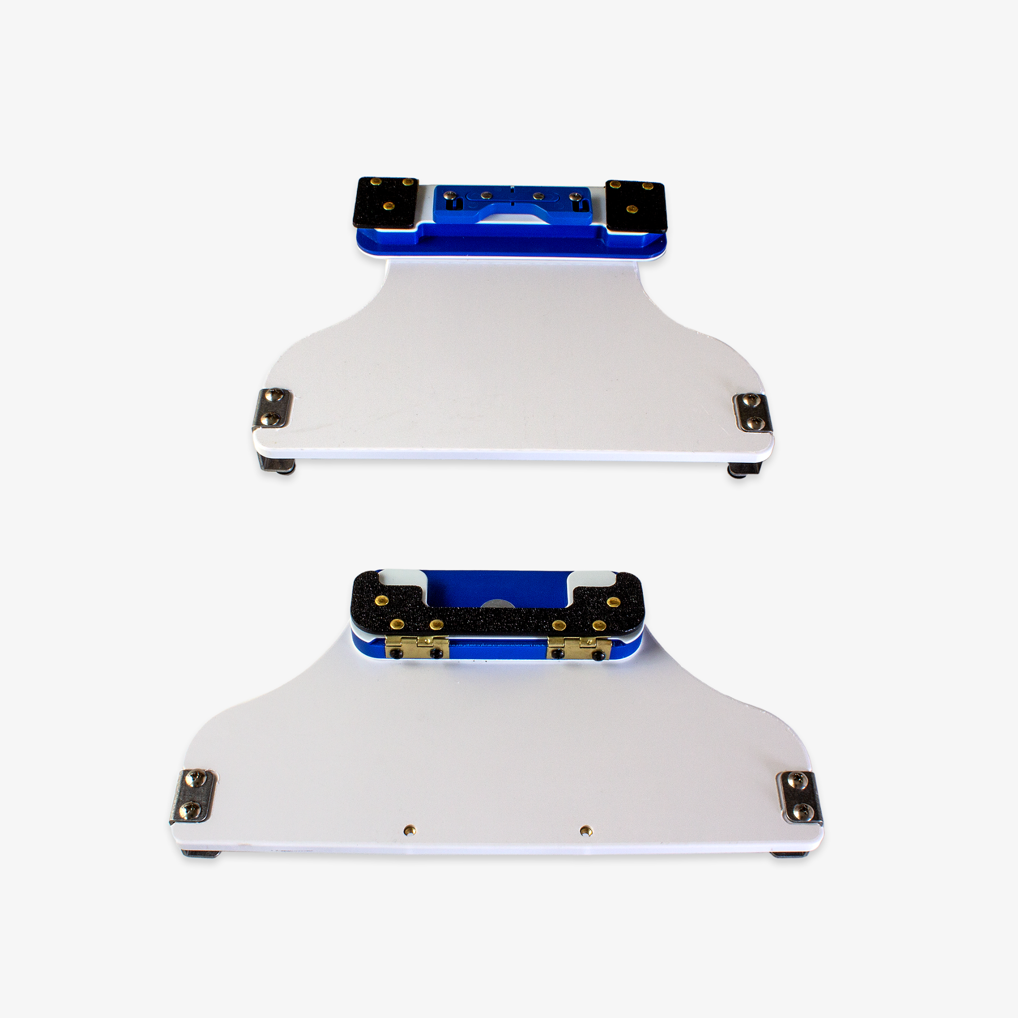 The fixture consists of two parts. One part is mounted on to the station with a set of thumbscrews. This is usually used in the bottom position.