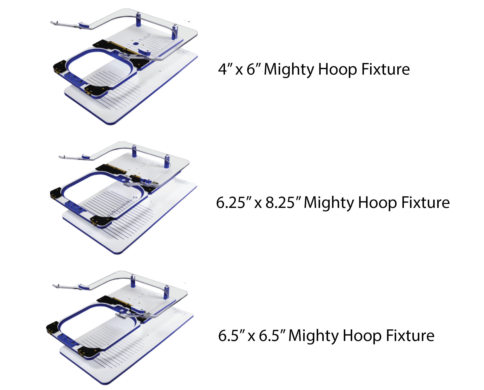 - Fixtures are available for Mighty Hoops up to the 7.5" x 7.5" Mighty Hoop.